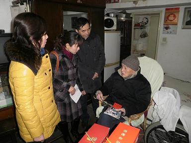 ,上仪所党员和团员青年在平凉路社区(街道)综合党委陪同下,再次走访慰问“守望幸福”活动结对的社区百岁老人,为他们送上慰问品和慰问金。(上仪所)