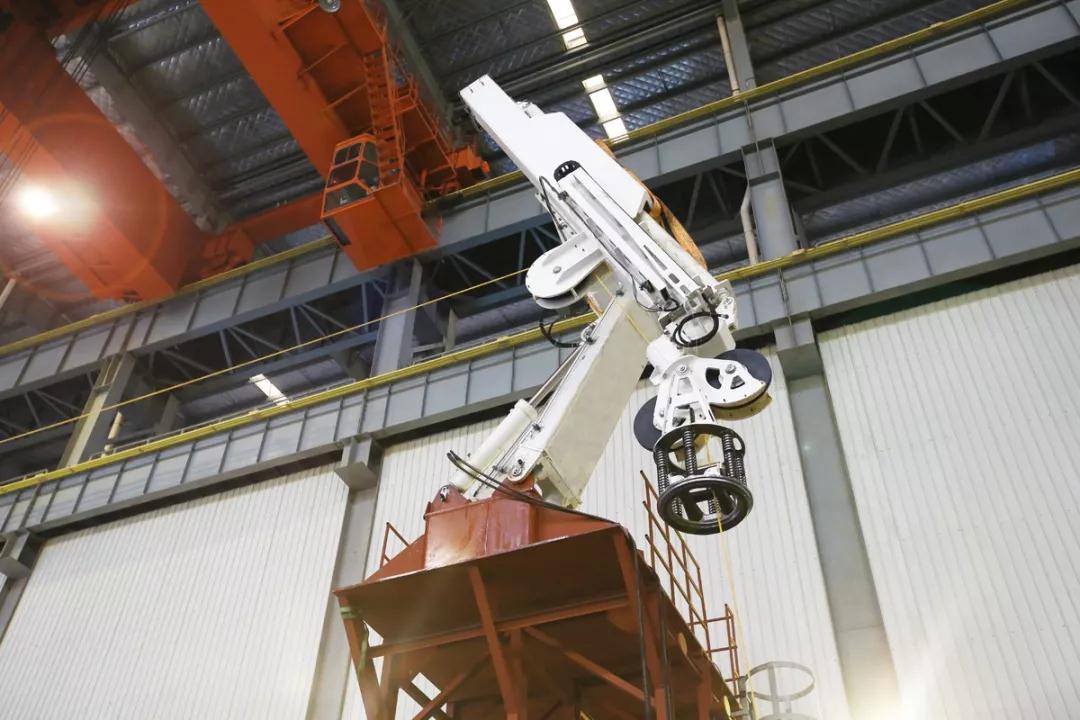 七〇四所研制的CTD吊放装置的伸缩臂行程达到4150mm,是国际上单节伸缩行程最长的吊机产品,符合水面投放安全可靠性要求,尤其是5级作业海况紧急回收等特殊要求。(七〇四所)