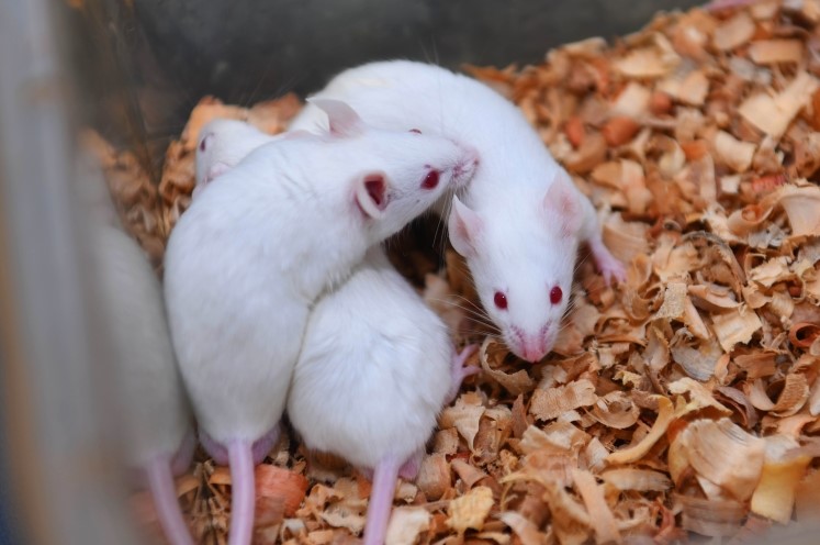 ▲图为上海实验动物研究中心培育的实验用小白鼠