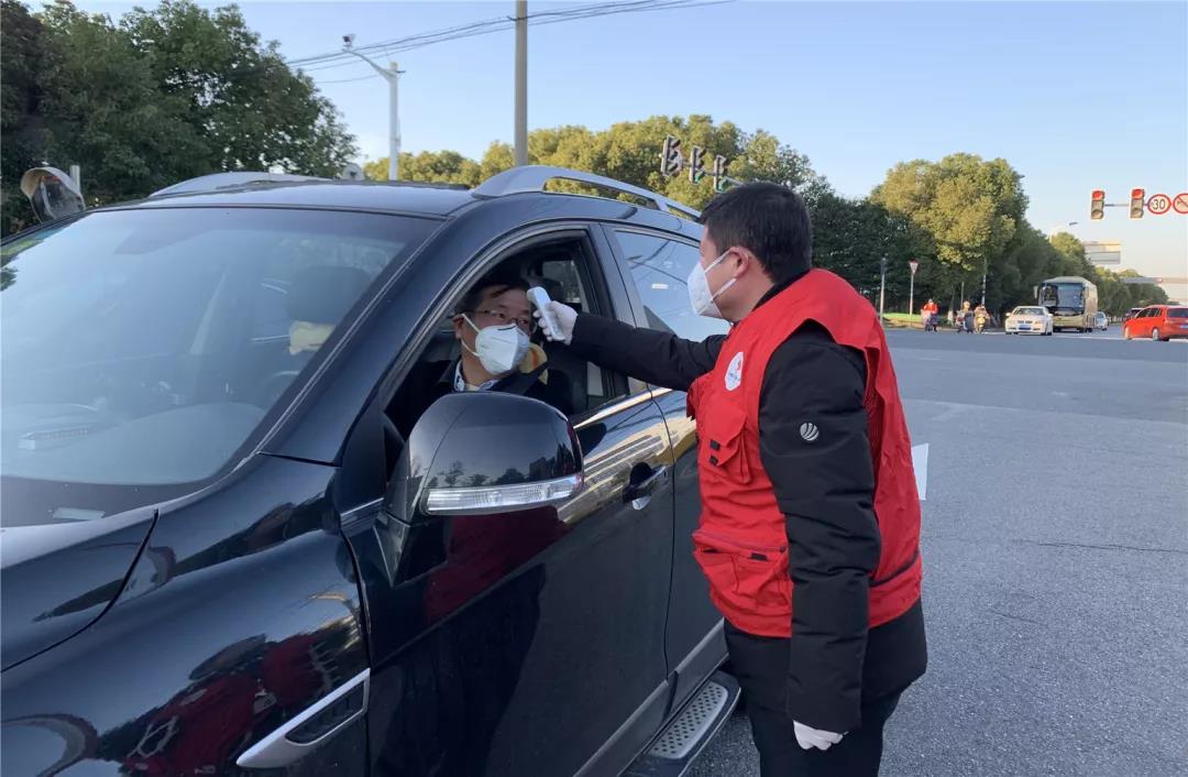 清晨,七一一所疫情防控志愿服务队的两名志愿者早早便到达颛桥地铁站的班车点,戴着口罩的他们默契地保持距离,开始为陆续来候车的员工测量体温。疫情来势汹汹,班车点是排查入所员工的第一道关口,他们不敢有一点马虎。