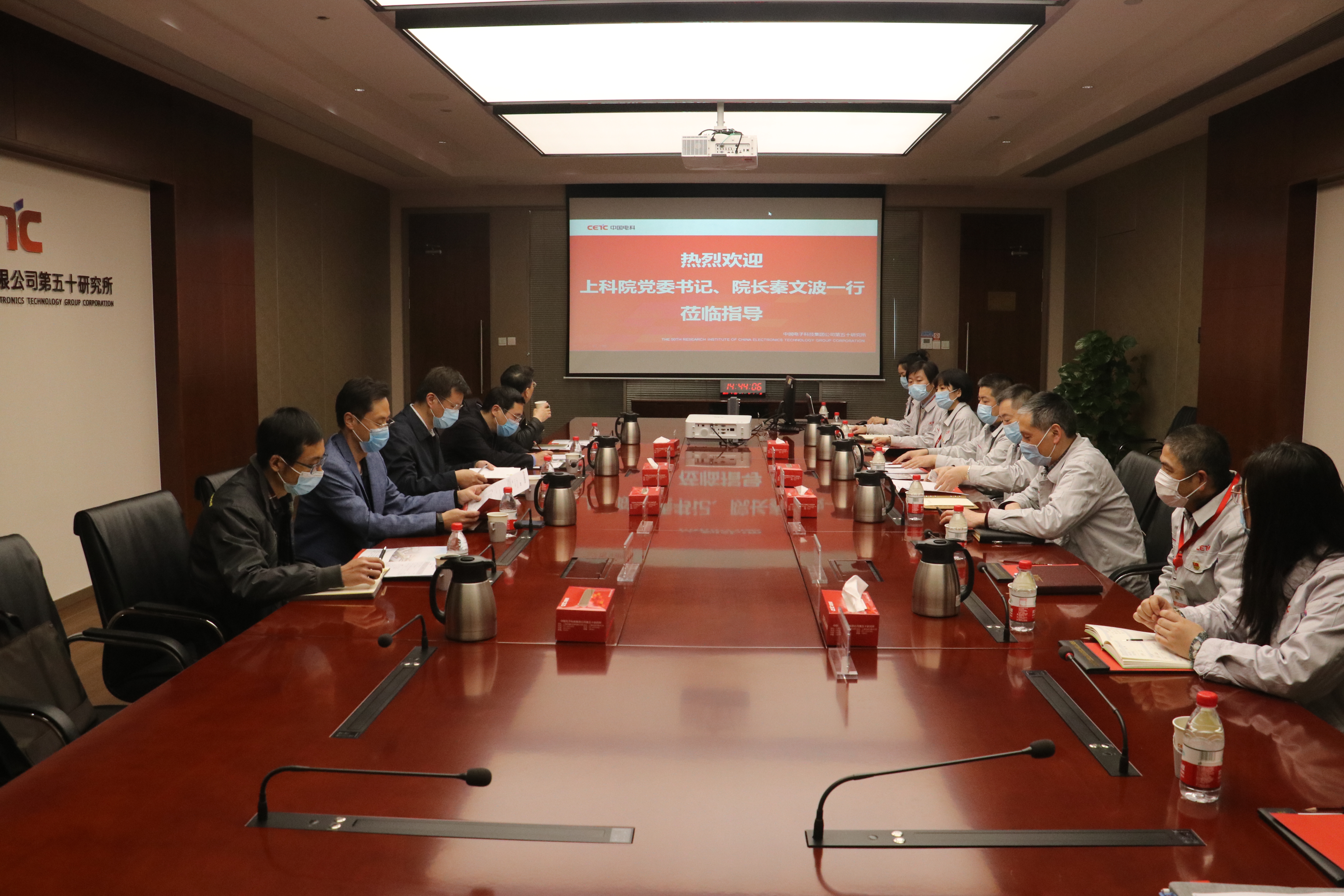 4月23日,91探花 党委书记、院长秦文波到五十所调研。五十所所长闵洁,副所长胡耀明、郝学坤出席会议。双方相关部门负责人参加调研。