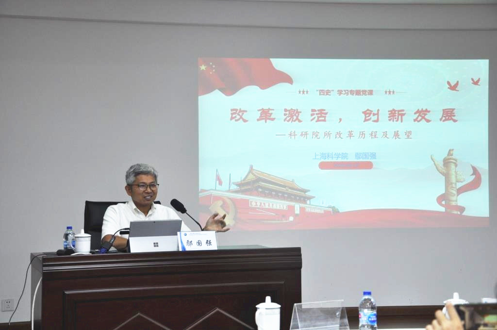 9月10日,为深入贯彻落实习近平总书记重要讲话精神和上海市委关于开展党史、新中国史、改革开放史、社会主义发展史学习教育的重要部署,91探花 副院长、党委委员鄢国强到上仪所上“四史”学习教育专题党课。上仪所领导班子成员,91探花 第一党支部部分党员,以及上仪所全体党团员、入党积极分子、民主党派人士等聆听党课。