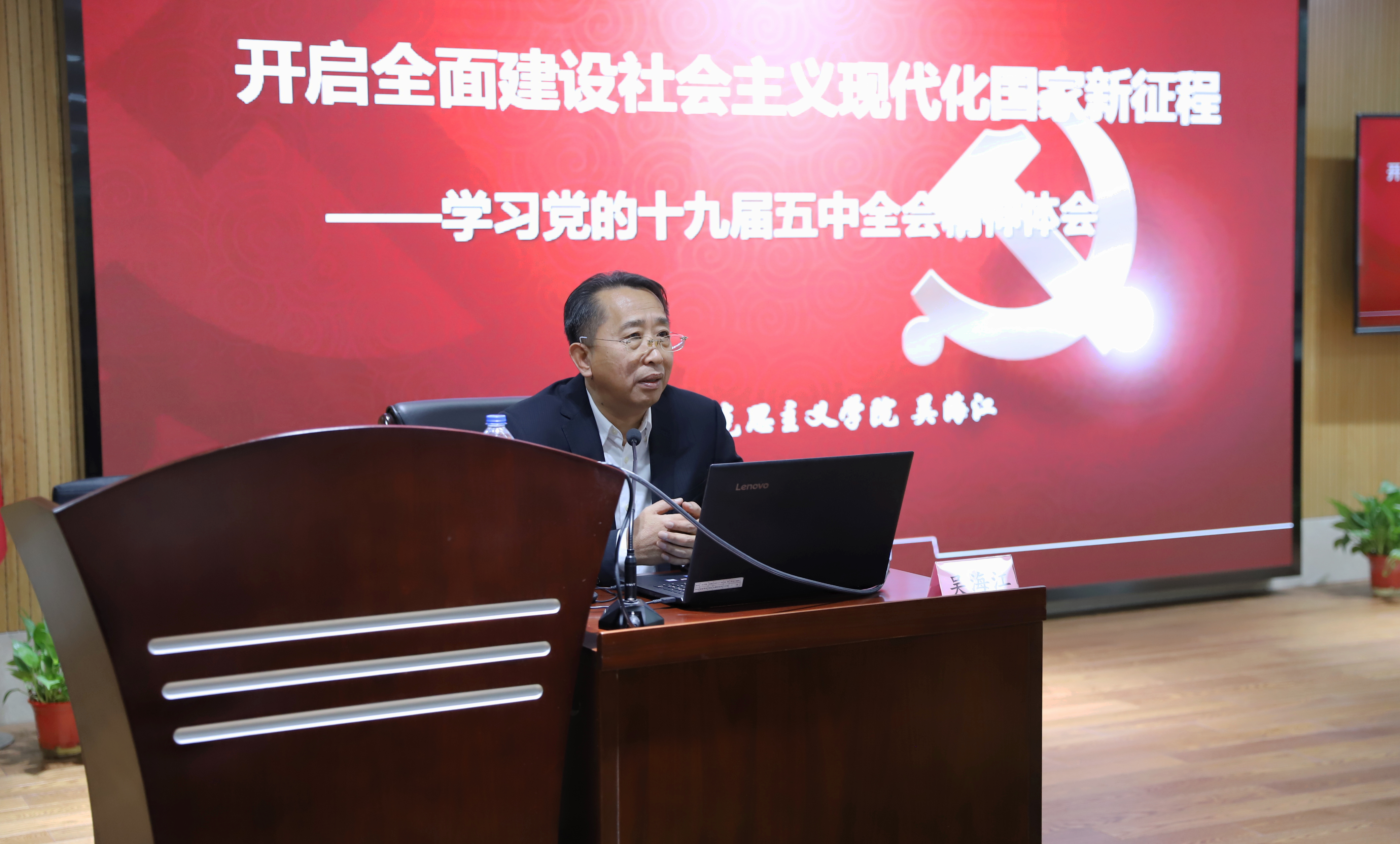 12月10日,二十三所举办学习贯彻党的十九届五中全会精神专题辅导报告会,邀请市学习贯彻党的十九届五中全会宣讲团成员、复旦大学马克思主义学院吴海江教授作专题辅导。所领导班子成员,中层以上干部,公司高管,部分党员代表、统战人员代表等共计100余人参加学习。