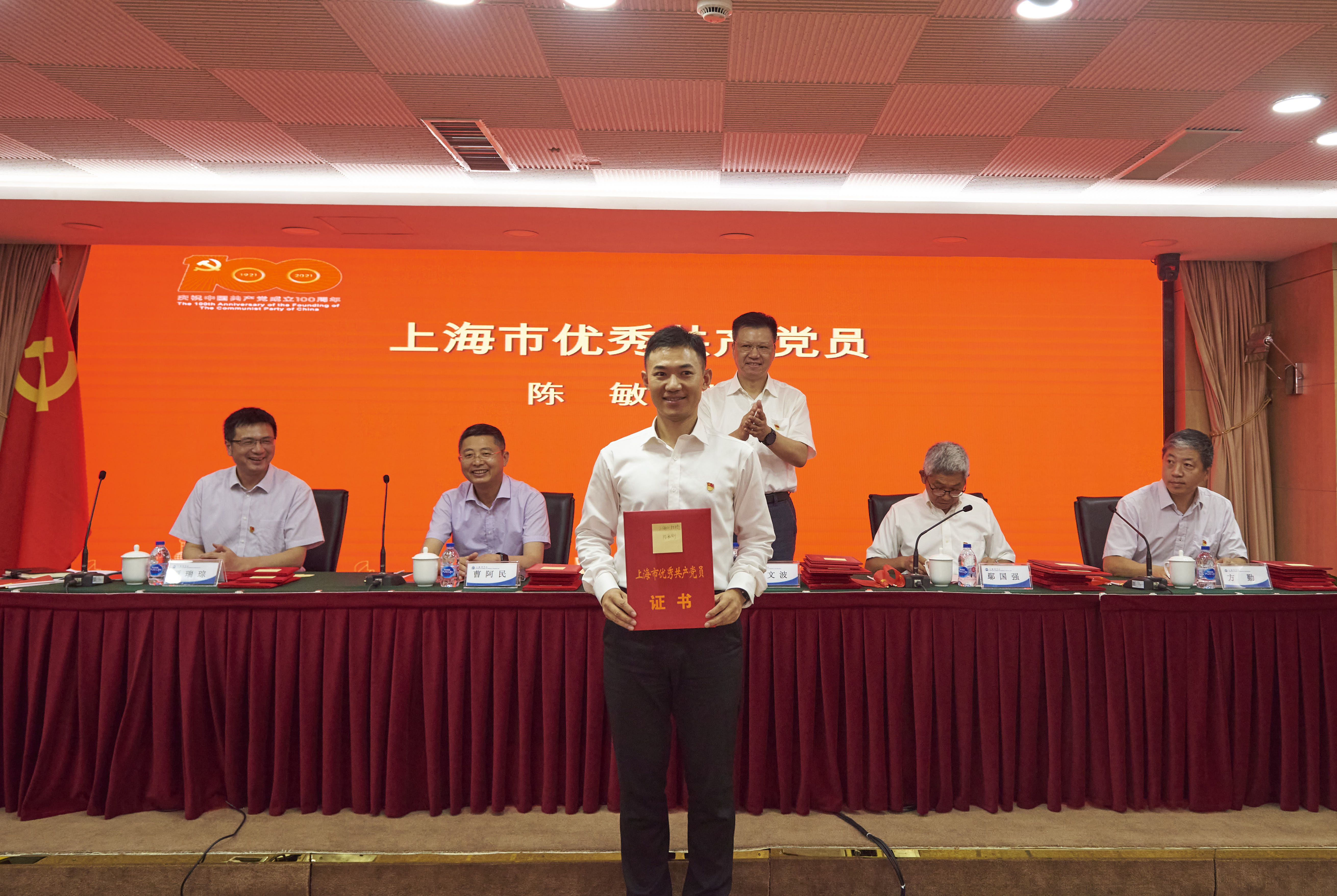 上海市优秀共产党员陈敏刚作《不忘初心,砥砺前行,逐梦人工智能新征程》交流发言。