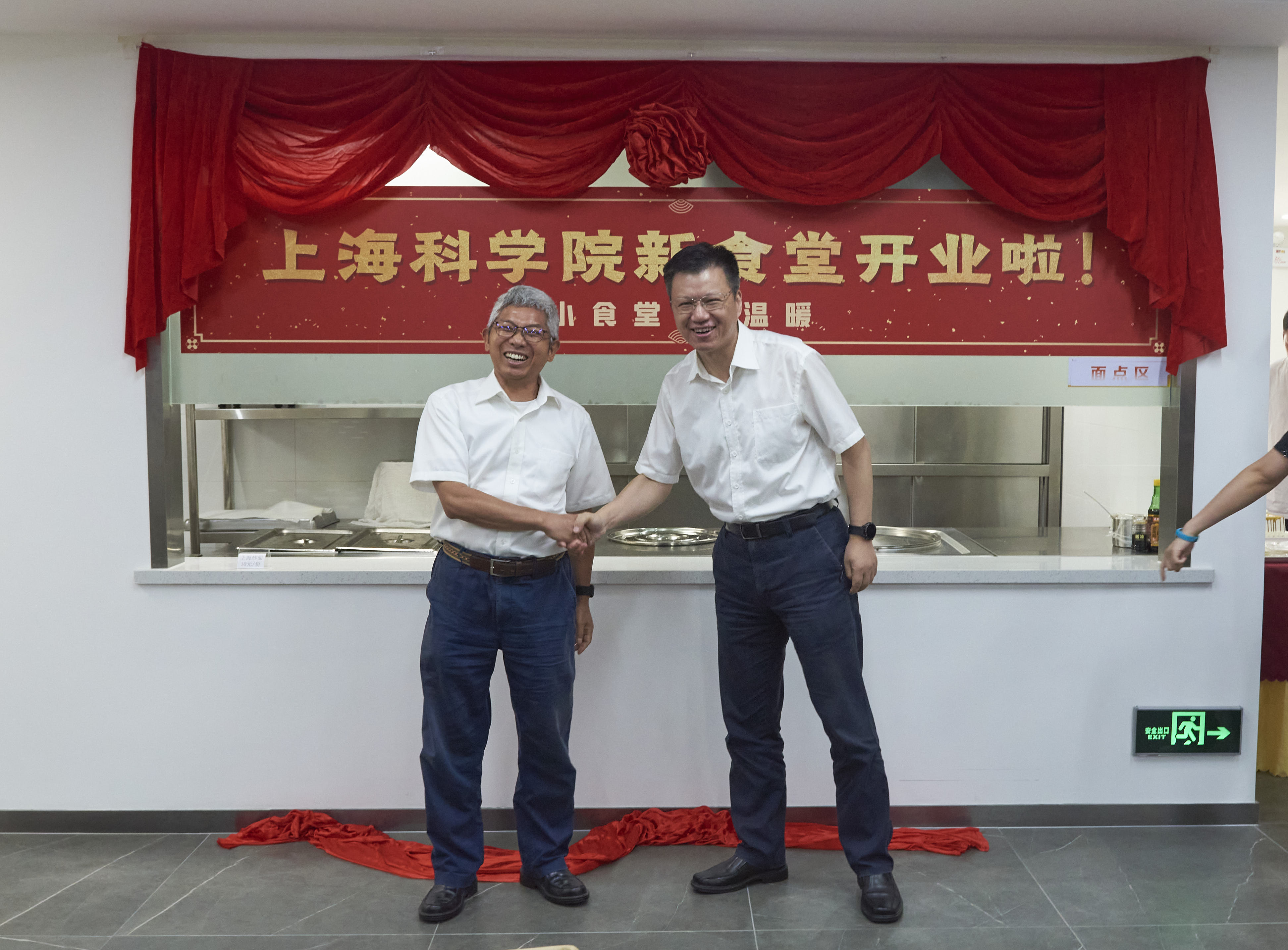 党委书记、院长秦文波,副院长鄢国强为员工新食堂揭幕。