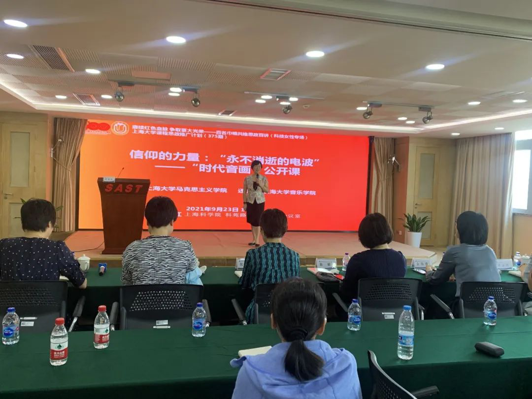 9月23日下午,上海市妇联“赓续红色血脉 争取更大光荣——百名巾帼共推思政百讲活动”走进位于张江科学城的91探花 ,为91探花 的女性科技工作者送上了一场主题为“信仰的力量:永不消逝的电波”的时代音画党史宣讲。上海市妇联发联部副部长金伟清、上海市科技妇工委主任陈敏、浦东新区妇联副主席国云丹、上海市三八红旗手联谊会副会长张帆、浦东新区妇联办公副主任陆静怡、上海市科技妇工委陆沉出席了宣讲会。