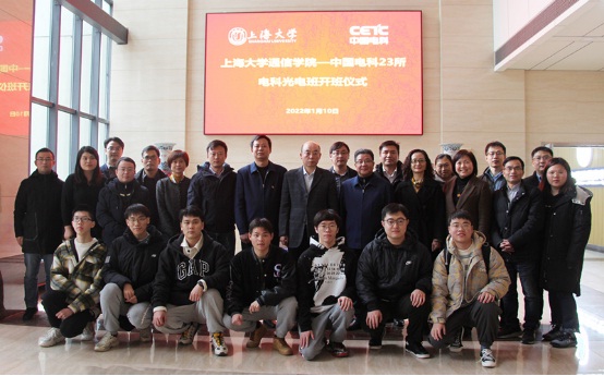 1月10日,中国电科23所—上海大学通信学院首届“电科光电班”开班仪式在上海大学宝山校区成功举办。该所副所长方卫华、集团公司首席科学家陈光辉等一行10人参加。上大通信学院院长王廷云、党委书记黄素娟、副院长张小贝、党委副书记陈涛等出席本次开班仪式。中国电科23所—通信学院首届“电科光电班”研究生参加活动。