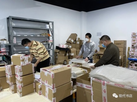 为了保障业务的正常运转,现代书店努力调配人员,不少员工毅然走出家门,坚守一线岗位。在疫情期间,除门店所在商场实行封控之外,现代书店静嘉店和浦嘉店做到了天天正常营业。店员们为了正常上岗,第一时间进行核酸检测、主动配合商场物业测量体温、做到佩戴口罩上岗,坚持规范防疫操作,全力确保疫情防控与书店运营两不误。书店物流配送中心的一线操作人员,在园区解封的第一时间到岗作业,两名党员率先垂范,发挥党员先锋模范作用,将因园区封闭积压的200多个订单在一天之内处理完毕。采购人员带着核酸检测报告,在保税仓解封的第一时间“逆行”赶往现场,处理因保税仓封闭而积压的货物,确保后续业务的正常运转。负责电商直播的工作人员也都积极奔赴各自岗位,在人们居家隔离期间,为大家带来福利与欢乐。