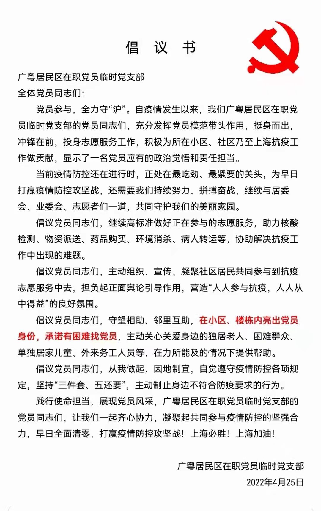 发挥自身宣传优势,牵头开展宣传工作。通过多种形式发动党员投身抗疫一线,在居住地在职党员临时党支部中叫响“有困难找党员”、“有困难找组织”口号,让疫情防控一线随处可见党员先锋身影。在疫情攻坚时刻,他负责拟制了《持续努力、拼搏奋战、打赢抗疫攻坚战的“倡议书”》,号召广大党员践行使命担当,共创美好家园。他负责组建了小区宣传报道小组,编辑小区志愿者抗疫服务推文,其中由他主笔的一篇广粤居委临时党支部的文章,被上海基层党建、智慧党建头版头条、先锋上海刊发。(院部第二党支部)