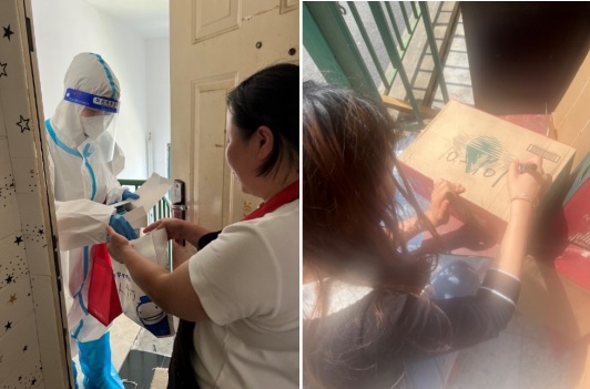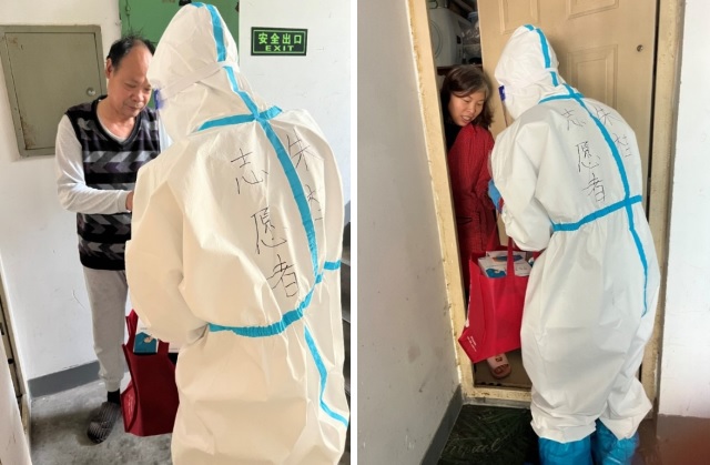 从小区封控管理开始,朱桂就一直活跃在社区抗疫志愿服务的第一线,从一开始的为居民收集清理垃圾,到后来的帮助居委分发抗疫物资,再到现在协助医护人员开展核酸检测工作。小区没有电梯,她穿着密不透风的防护服,一栋一栋地爬楼梯,挨家挨户为居民们发放抗原试剂,没一会儿已是大汗淋漓。虽然很累,但是她毫无怨言,她说到:“居民的每一声谢谢都温暖着我的心,我也感受到志愿者服务对我不仅仅是一种精神培养,更是锤炼了自己的毅力和耐力。”