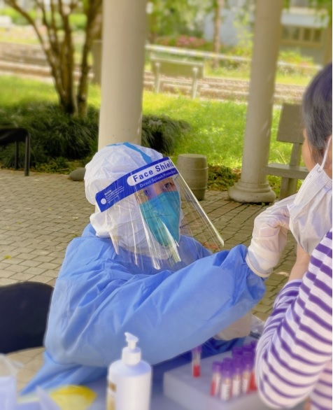4月底,梁偲同志主动申请参加核酸采样培训,加入抗疫第一线。核酸采样培训以线上+线下相结合的方式进行,线上以理论知识为主,线下以实践操作为主。培训内容包括个人防护服和隔离衣穿脱、鼻咽拭子的采集操作、消毒隔离相关知识、医疗废物处置及生物安全知识等。梁偲同志在完成培训且理论和操作考核合格后获得了核酸采样上岗证,成为小区的固定采样员。目前,她已完成多次核酸采样工作,并在实践中不断总结经验,从一个“小白”成长为一个“熟练工”,为上海的核酸筛查工作和全面推进常态化核酸检测贡献力量。