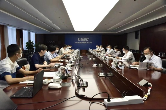 院长秦文波一行到中国船舶集团有限公司交流调研。中国船舶集团有限公司党组书记、董事长雷凡培和集团主要职能部门负责人出席座谈会。