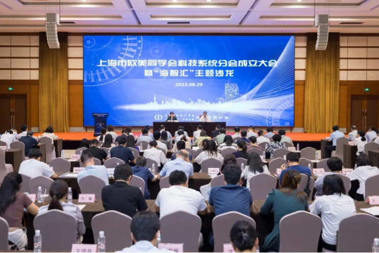 2023年8月29日下午,上海市欧美同学会科技系统分会成立大会暨“海智汇”主题沙龙在上海科学会堂举行。市委统战部二级巡视员、市欧美同学会党组书记李霞,市科技工作党委副书记、市科技机关党委书记陈龙出席会议,并共同为科技系统分会揭牌。