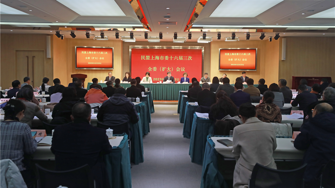 12月23日下午,民盟上海市委十六届三次全委(扩大)会议在民主党派大厦召开。民盟中央副主席、上海市政协副主席、民盟市委主委陈群代表常委会作工作报告并讲话。民盟市委副主委姚卓匀、花蓓、厉明、龙婉丽、严伟、齐飞、曹阿民出席。民盟市委委员、各基层组织负责人、在沪中央委员、民盟市十六大代表、民盟市委机关各部室负责人等130余人参加会议。