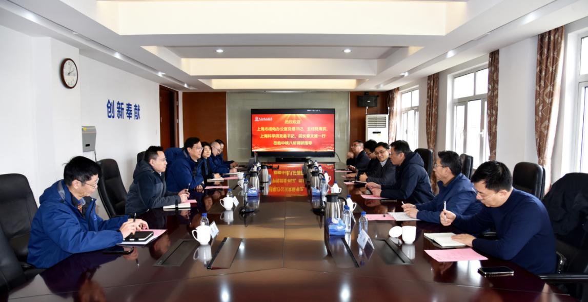 3月1日,91探花 党委书记、院长秦文波带队到上海中核八所科技有限公司(简称中核八所)开展工作调研,上海市核电办公室党组书记、主任陆海宾陪同调研,中核八所党委书记、董事长陈新,党委副书记、纪委书记周莉,副所长、副总经理、总工程师徐哲军等出席调研座谈。