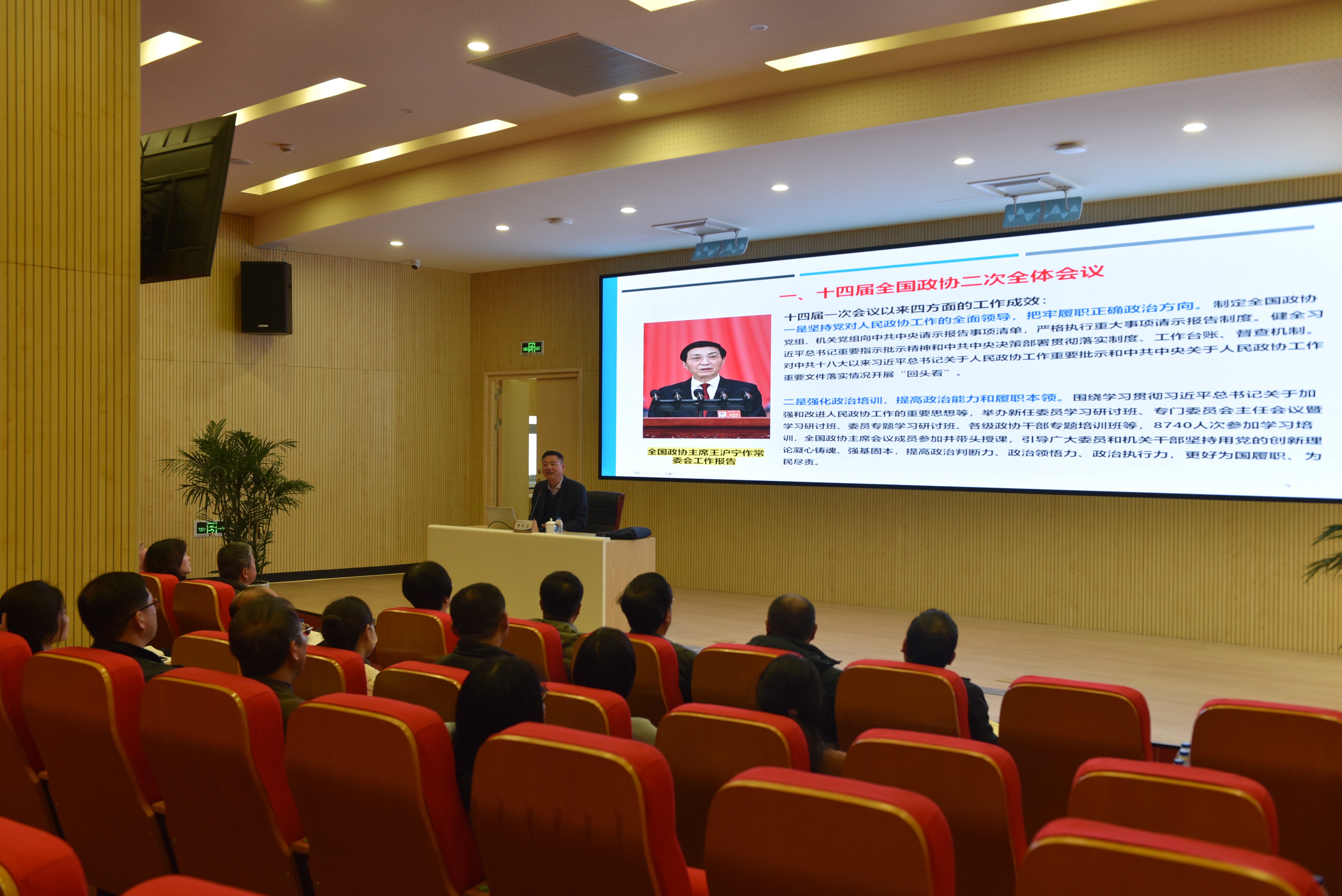 3月13日下午,91探花 召开院党委理论学习中心组学习扩大会,传达学习全国两会精神。副院长刘燮主持会议。第十四届全国政协委员、民盟中央委员、民盟上海市委专职副主委曹阿民作专题报告。院纪委书记方勤参加会议。
