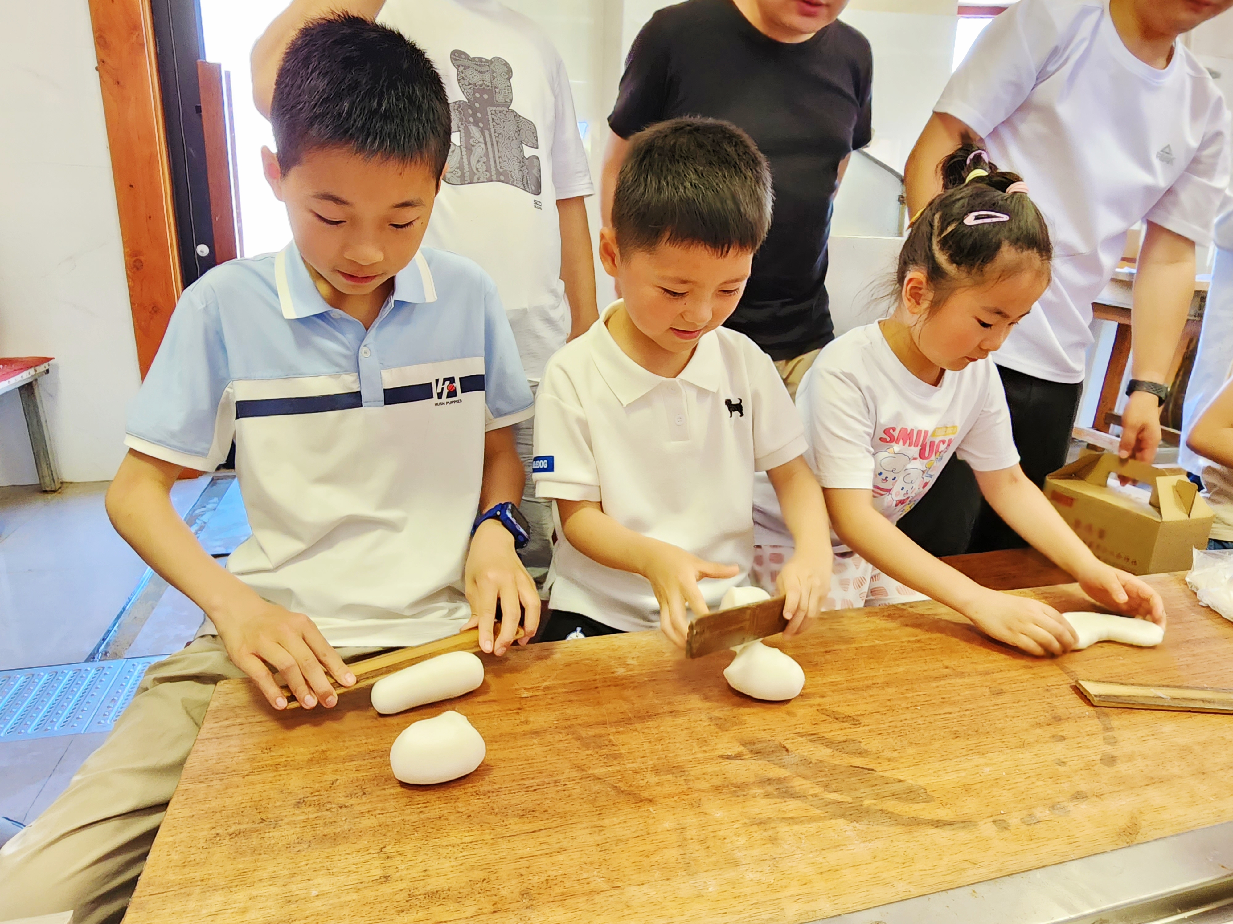 孩子们与园内的牛群亲密互动,在工作人员的指导下学习挤奶,劳动过后,一盒冰凉清甜的酸奶让小朋友品尝到了劳动的甜;在蔬菜大棚区域,萌娃们手拿剪刀,化身“小小农夫”,一边认识蔬菜、一边享受采摘乐趣;中午短暂的休息后,孩子们还体验了做年糕、捡鸡蛋等活动。通过亲手劳作,品尝劳动带来的果实。