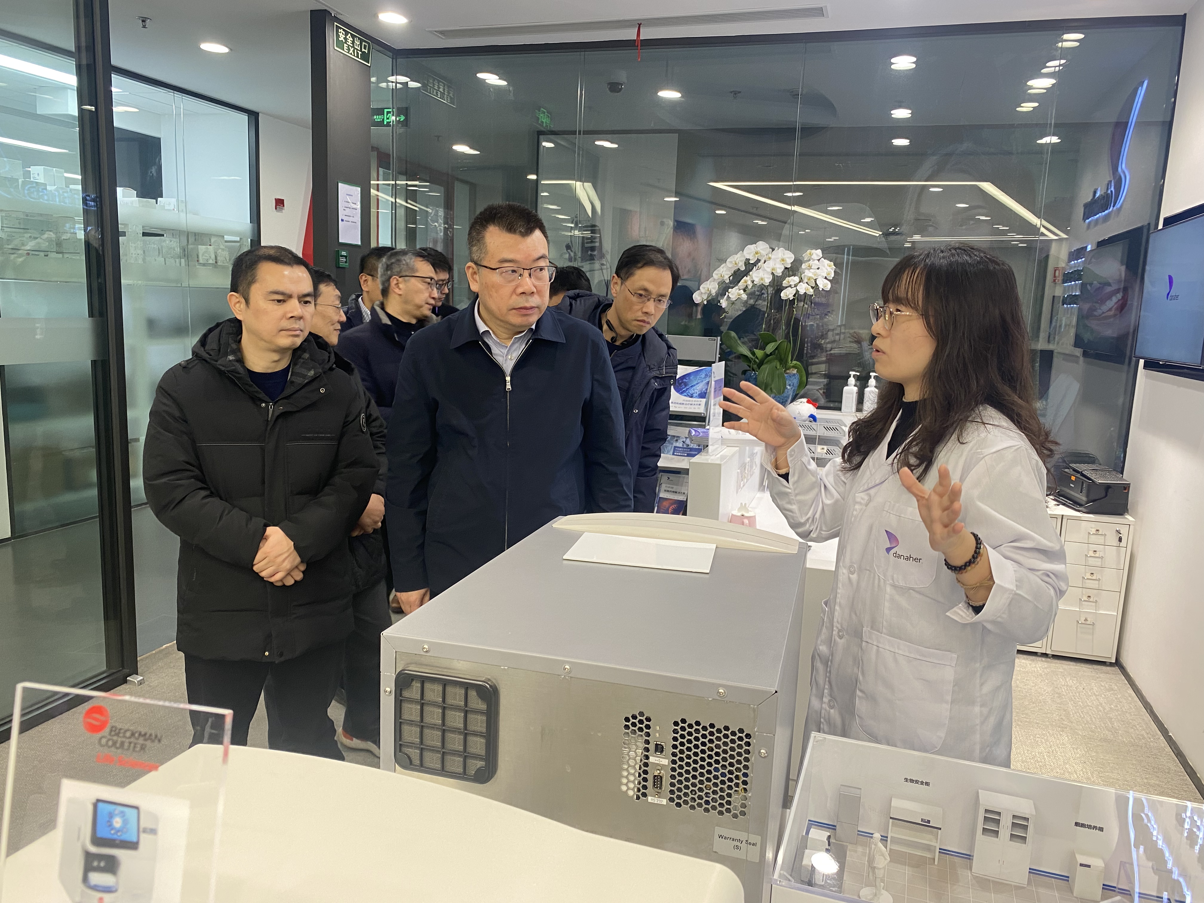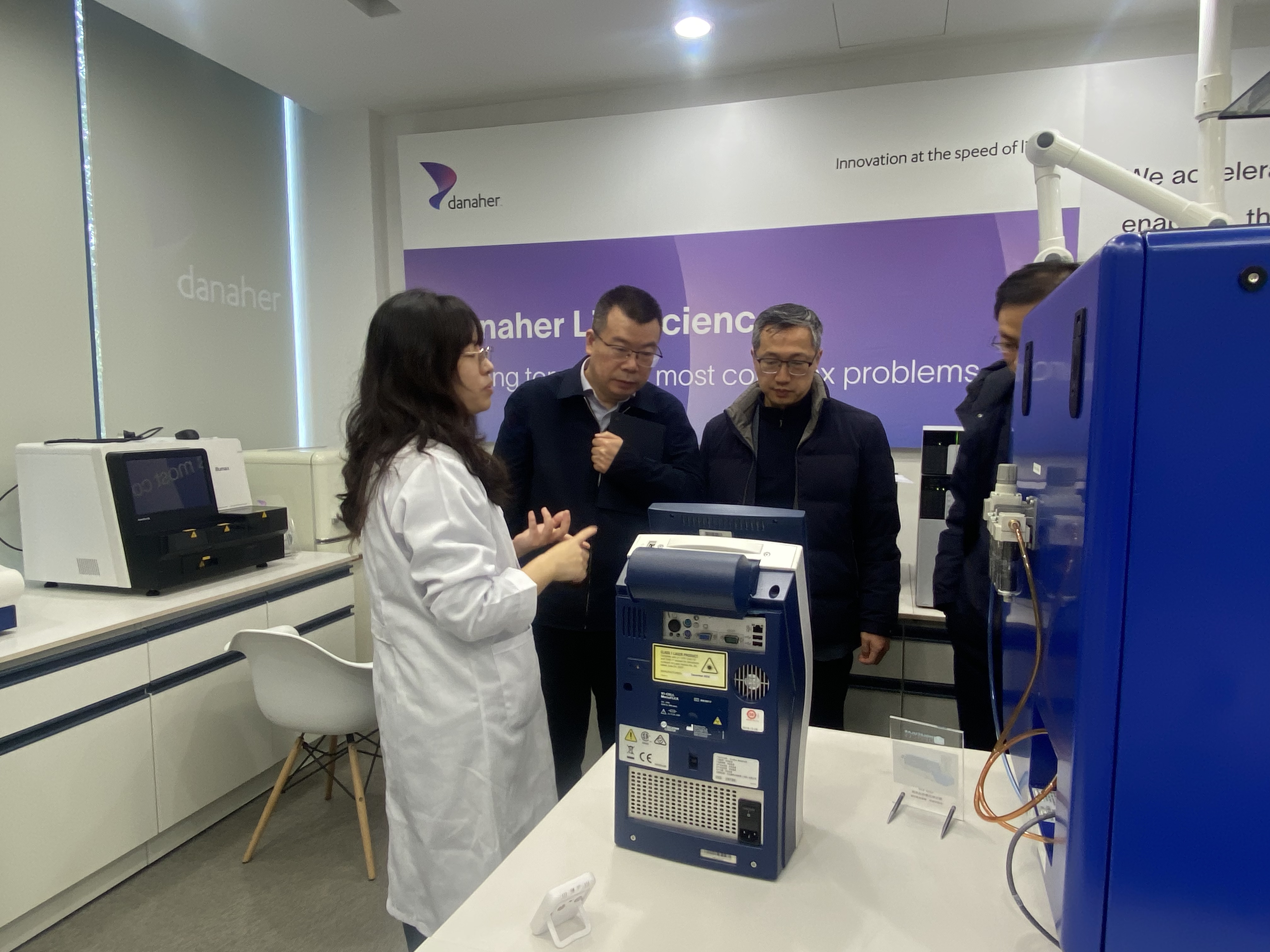 孙真荣一行调研了丹纳赫中国生命科学研究院、SCIEX应用支持中心等,详细了解了丹纳赫三重四极杆质谱仪、高分辨质谱系统、微生物克隆筛选系统、多通道毛细管电泳系统等优势产品。丹纳赫创立于1984年,是生命科学、生物技术、医学诊断领域的创新者,致力于加速科技进步,改善人类健康。