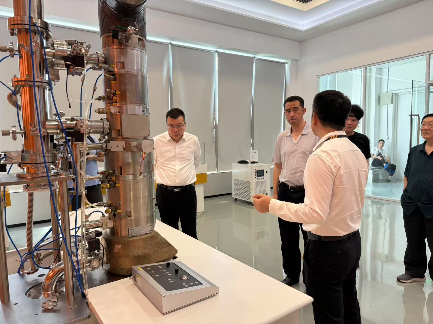 孙真荣院长一行首先走访了博众仪器。在博众仪器总经理唐爱权陪同下,调研团队参观了博众仪器生产车间,重点了解电子束技术相关产品的研制情况,并深入了解企业在相关科学仪器的技术进展与发展布局。