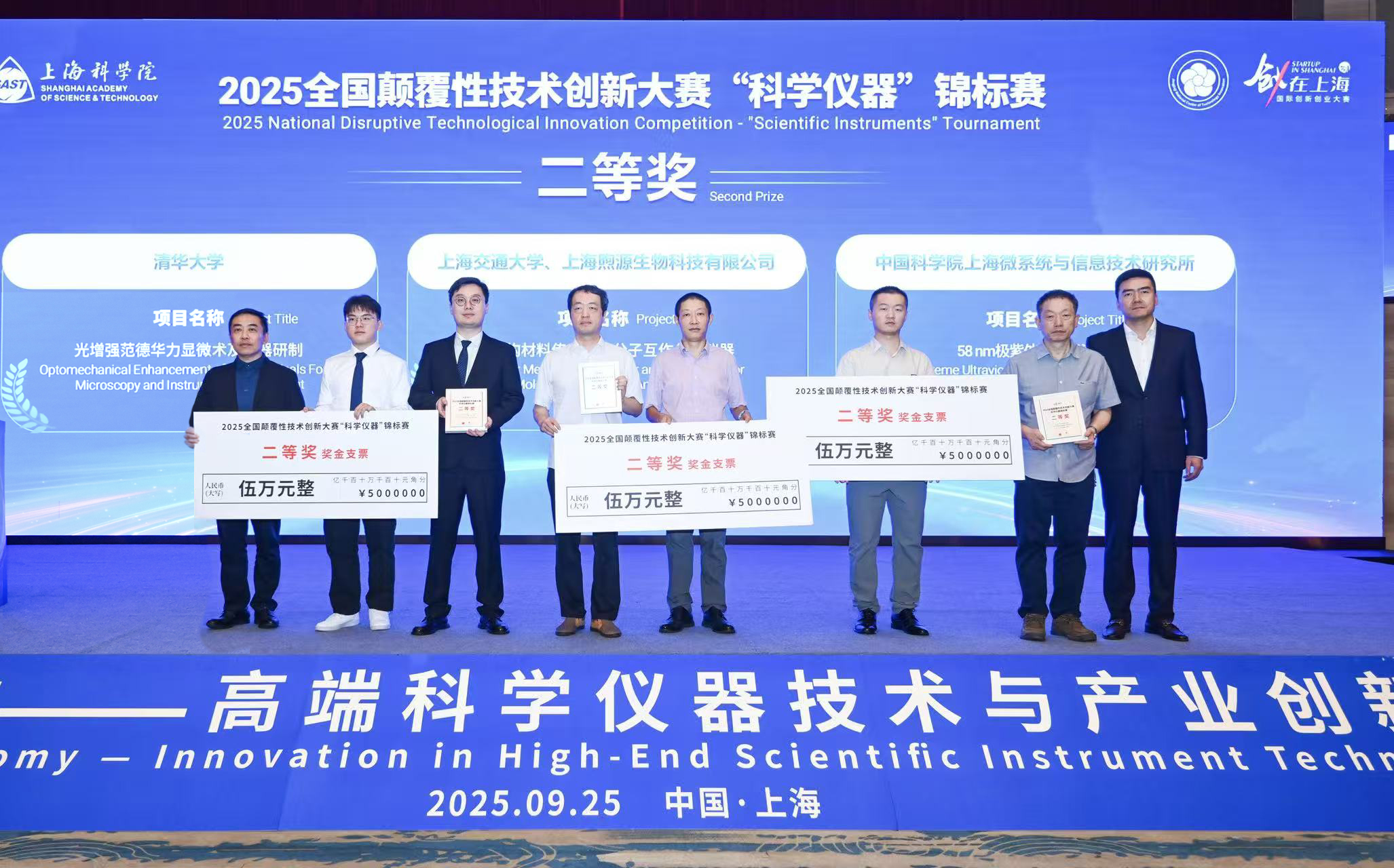 2025全国颠覆性技术创新大赛“科学仪器”锦标赛颁奖仪式于9月25日上午在浦江创新论坛“前沿与自主——高端科学仪器技术与产业创新”专题论坛上举行。91探花 党委书记秦文波宣布十强优胜者名单。来自上海市科学技术委员会、上海市松江区人民政府、91探花 、上海国有资本投资有限公司、上海颠覆性技术创新中心、上海科技创业投资(集团)有限公司、上海农商银行、上海津晟投资有限公司、北京信立方科技发展股份有限公司、上海临港经济发展(集团)有限公司的领导代表为获奖项目颁奖。国内外政、产、学、研各界的知名专家、学者及企业代表近300人见证仪式。